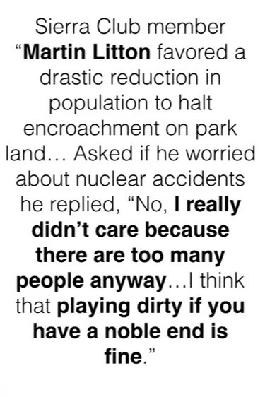 A Sierra Club activist named Martin Litton, a pilot and nature photographer for Sunset magazine, led the campaign to oppose Diablo Canyon, a nuclear site Pacific Gas and Electric proposed to build on the central Californian coast in 1965. Sierra Club member “Martin Litton hated people,” wrote a historian about the how the environmental movement turned against nuclear. “He favored a drastic reduction in population to halt encroachment on park land.”