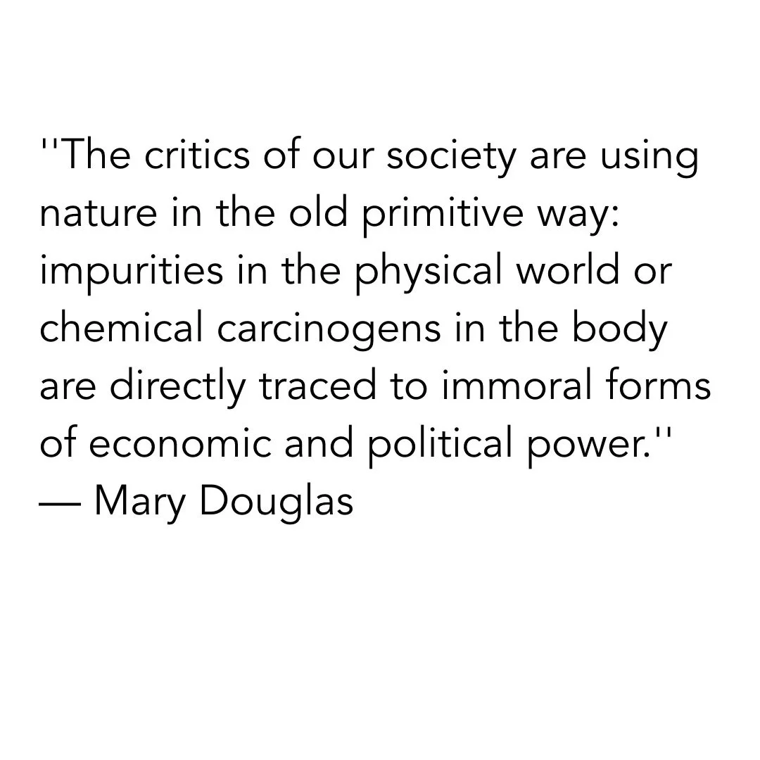 In other words, the public came to see nuclear as dirty only after it saw it as dangerous, and thus immoral. ''The critics of our society are using nature in the old primitive way: impurities in the physical world or chemical carcinogens in the body are directly traced to immoral forms of economic and political power,” wrote anthropologist Mary Douglas, who analyzed anti-nuclear activists the same way she did other cultures. “Laws of nature are dragged into sanction the moral code.”