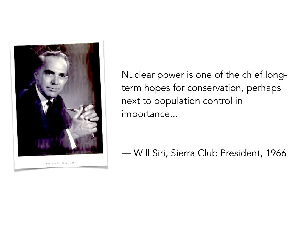 No. Until the early-seventies, nuclear was embraced by liberals and environmentalists including the Sierra Club. “Nuclear energy is the only practical alternative that we have to destroying the environment with oil and coal,” said famed nature photographer and Sierra Club Director, Ansel Adams. “Nuclear power is one of the chief long-term hopes for conservation," said Sierra Club director Will Siri. "Cheap energy in unlimited quantities is one of the chief factors in allowing a large rapidly growing population to preserve wildlands, open space, and lands of high scenic value ... With energy we can afford the luxury of setting aside lands from productive uses.”