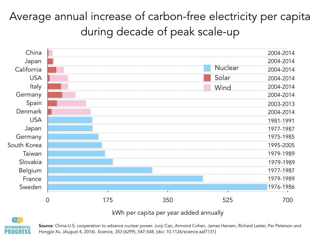 On the contrary, nuclear deploys much more power much faster than solar and wind.