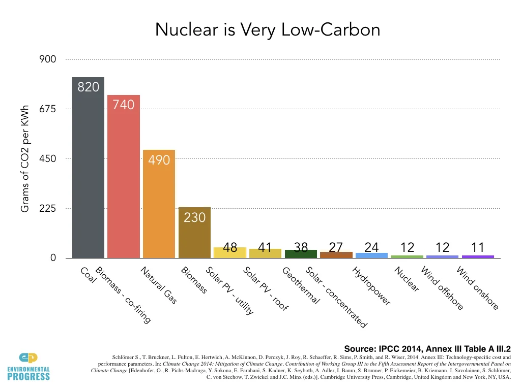 Yes. According to a review of the evidence, the United Nations Intergovernmental Panel on Climate Change says nuclear is two to four times less carbon-intensive than solar.