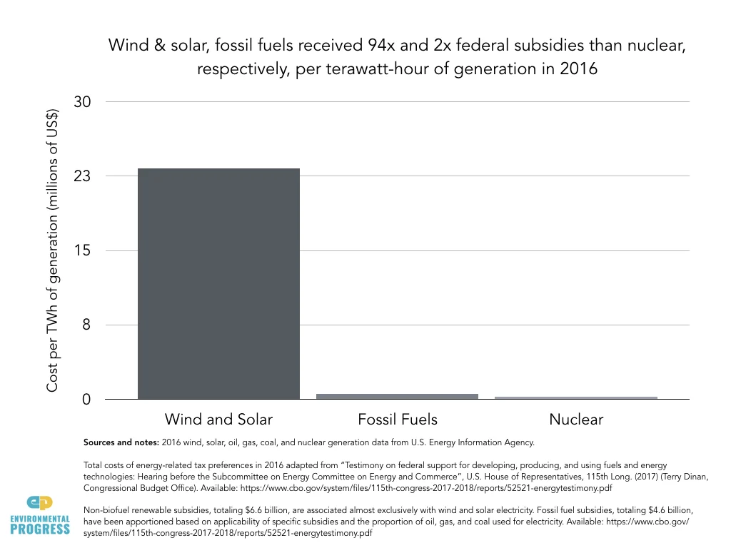 Everywhere the underlying reason is the same: anti-nuclear forces, in tandem with rent-seeking economic interests, have captured government policies. On one extreme lies Germany, which decided to speed up the closure of its nuclear plants following Fukushima. In Sweden the government imposed a special tax on nuclear. In the U.S., solar and wind are far more heavily subsidized than nuclear. And states across the nation have enacted Renewable Portfolio Standards, RPS, that mandate rising wind and solar, and that exclude nuclear.